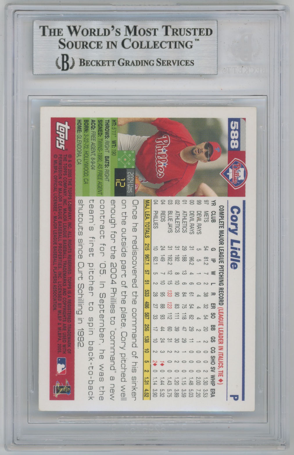 2005 Topps 588 Cory Lidle - Beckett Slabbed