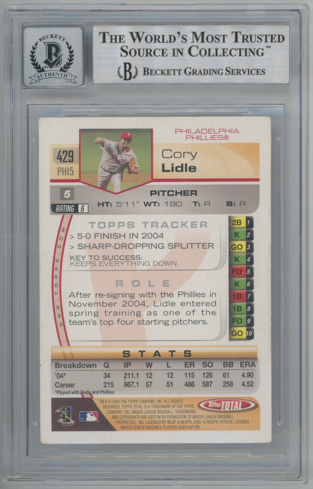 2005 Topps Total 429 Cory Lidle Beckett 10 (auto)