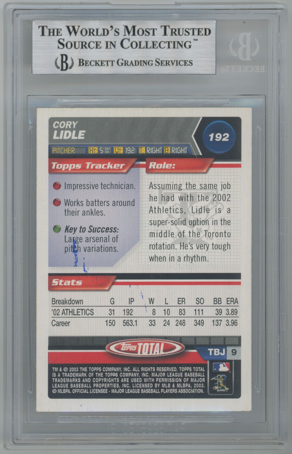 2003 Topps Total 192 Cory Lidle - Beckett Slabbed
