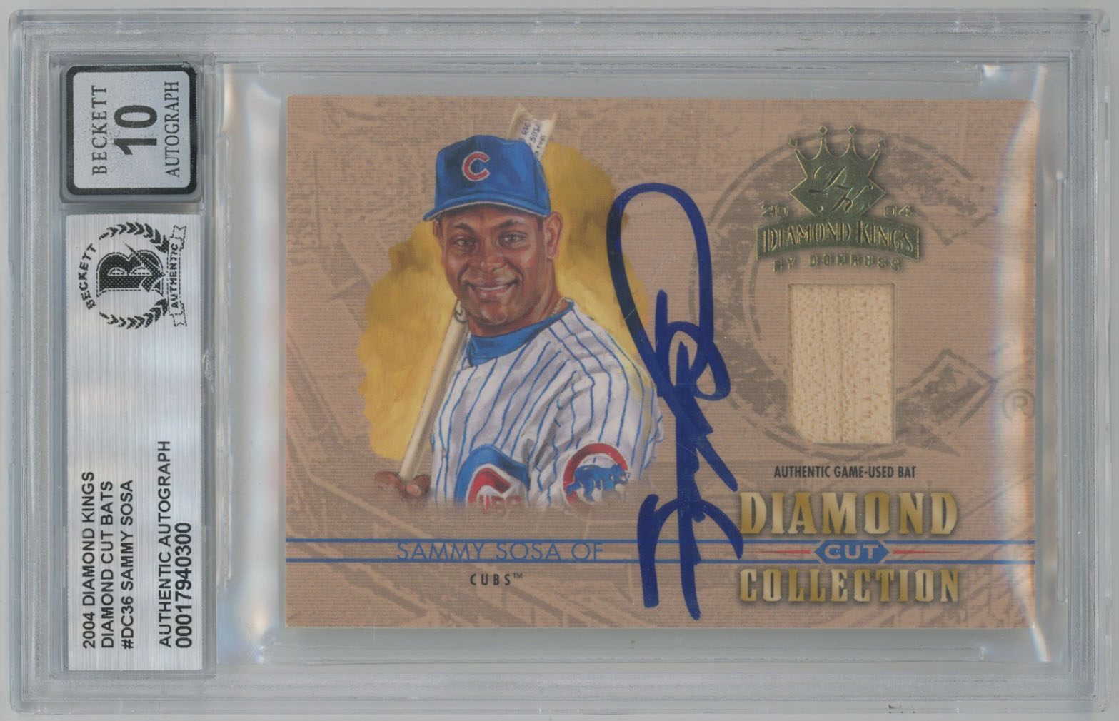 2004 Diamond Kings Diamond Cut Sammy Sosa Signed Bat Card Beckett 10 (auto)