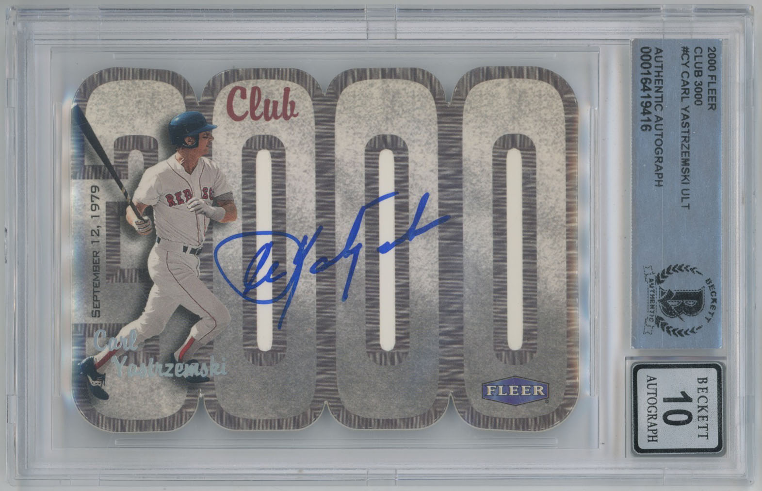 2000 Fleer Club 3000 Carl Yastrzemski Signed Card Red Sox Beckett 10 (auto)