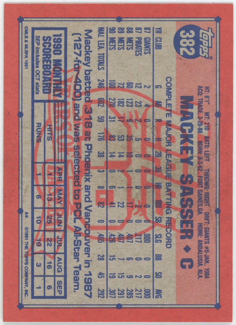 1991 Topps Desert Shield 382 Mackey Sasser 9