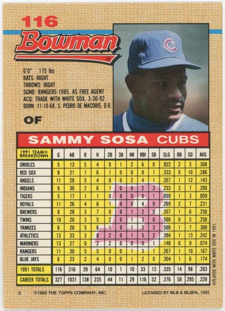 1997 Bowman Chrome 40 Sammy Sosa 9.5