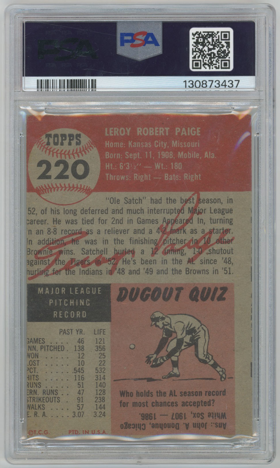 1953 Topps 220 Paige PSA 3 mc