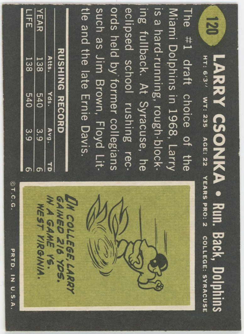 1969 Topps 120 Csonka RC Ex-Mt+