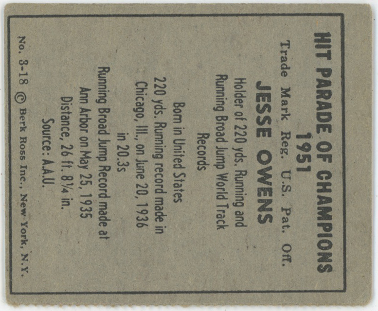 1951 Berk Ross Jesse Owens VG-Ex/Ex