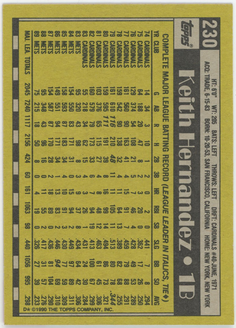 1990 Topps 230 Keith Hernandez 9.5