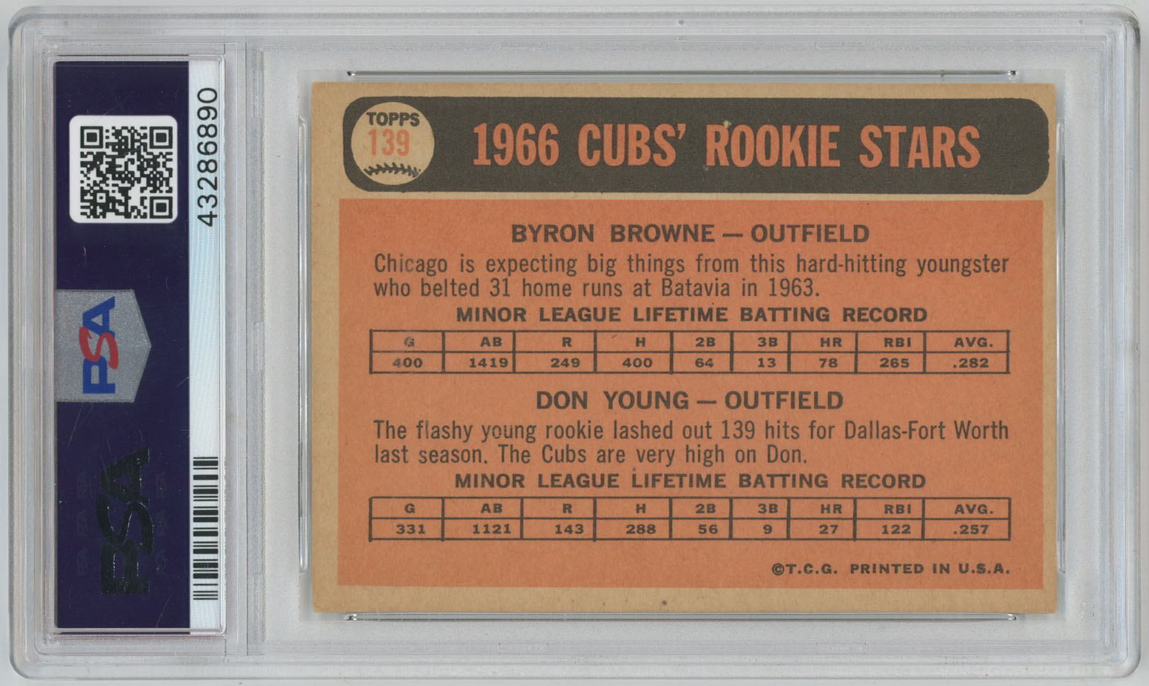 1966 Topps 139 Byron Browne Don Young Signed Rookie PSA