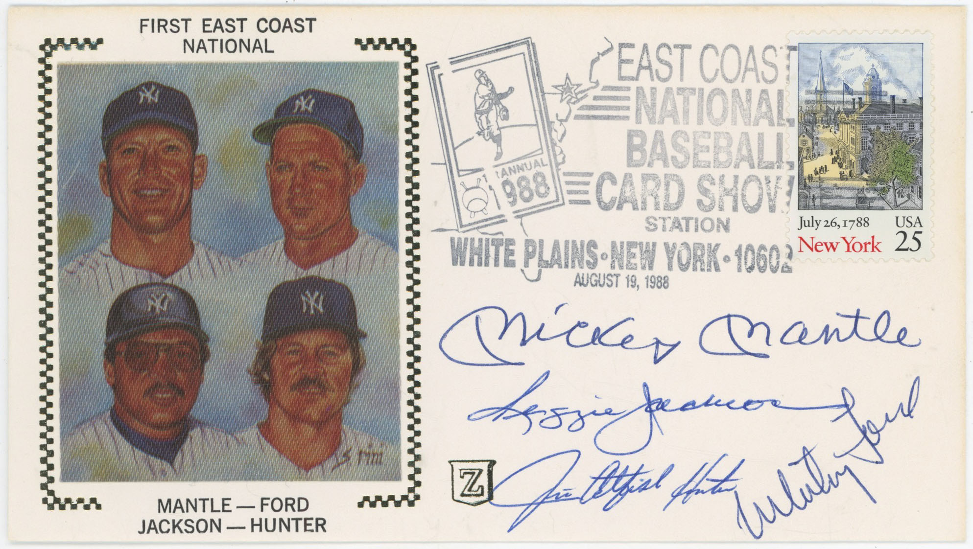 Cachet Mantle/Jackson/Hunter/Ford Signed 1988 Cachet 9.5