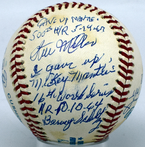 Mickey Mantle Historic Home Run Pitchers Signed Baseball (5 sigs w/Gibson) - JSA sticker 9 JSA LOA (CARD)