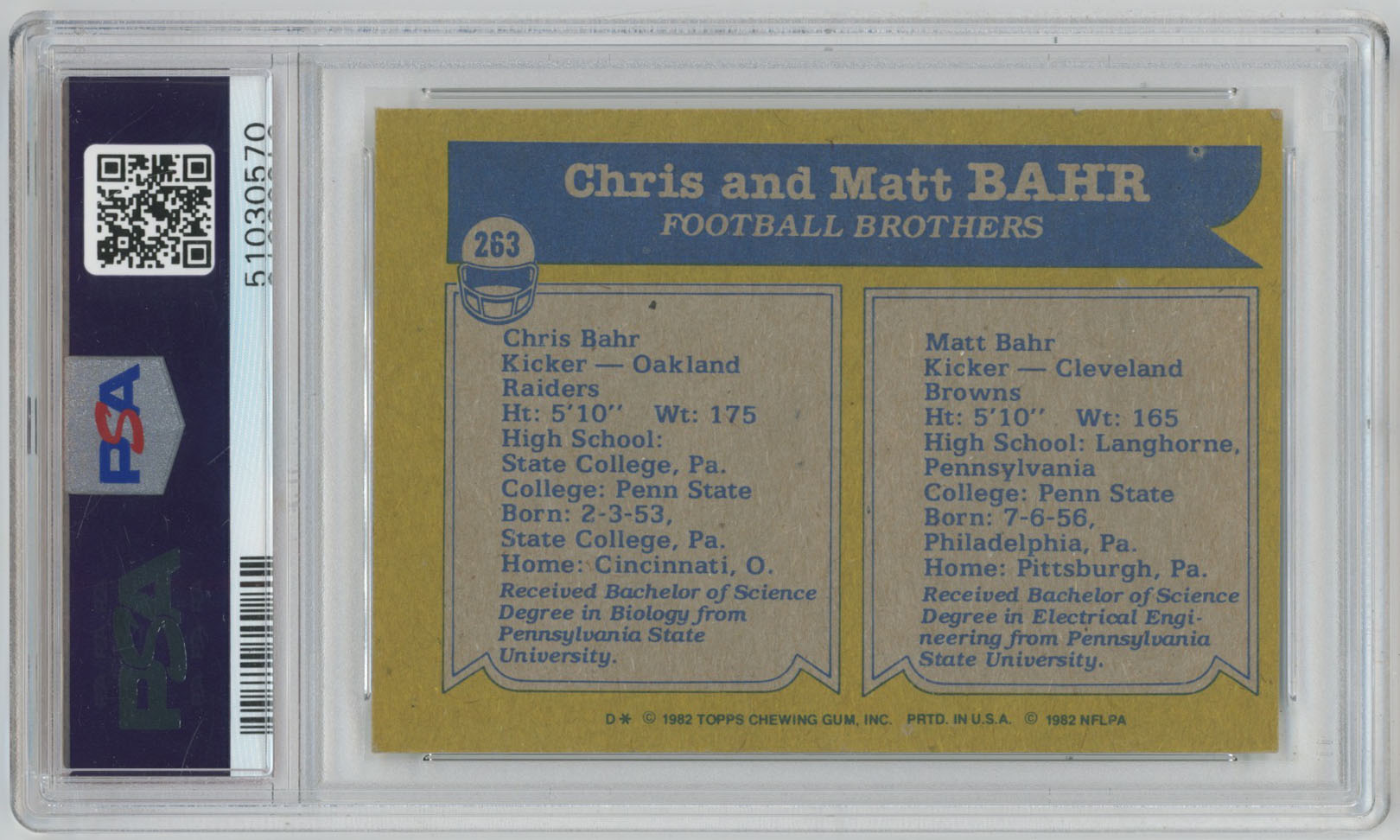 1982 Topps 263 Chris & Matt Bahr Signed Card PSA PSA 10 (auto)