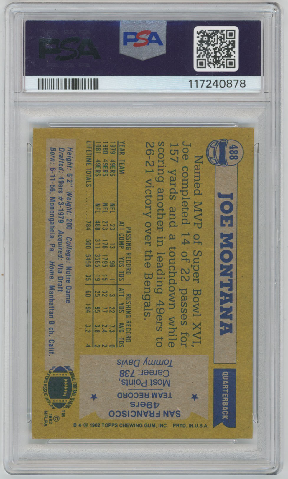 1982 Topps 488 Joe Montana Signed Card PSA Slabbed