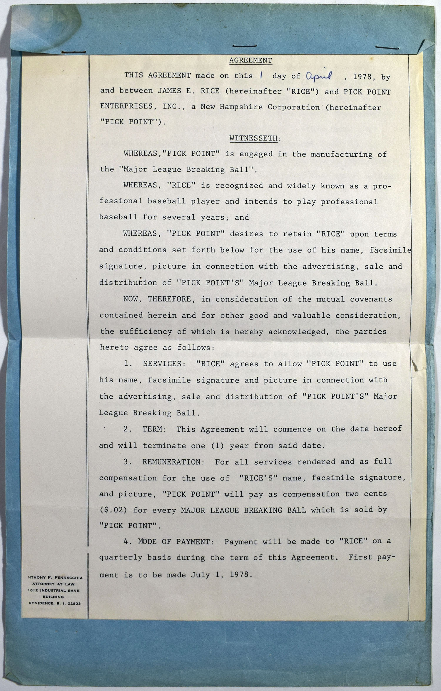 Contract Rice, Jim Signed 1978 Agreement 9.5