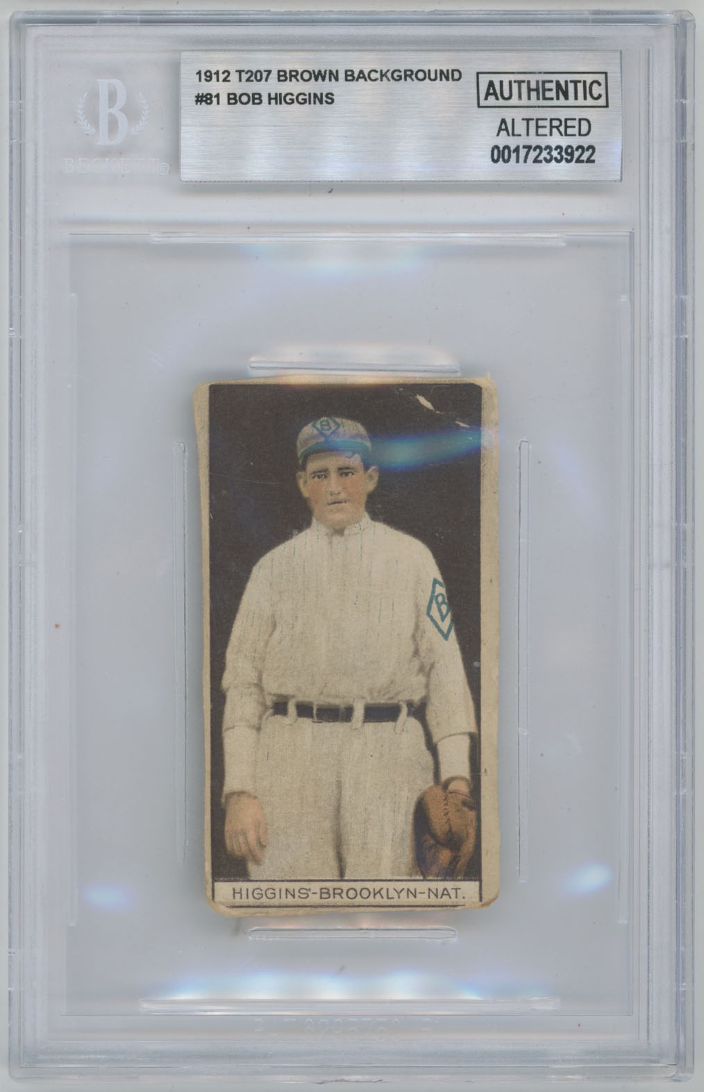 1912 T207 Brown Border Higgins - Rare Blank Back Beckett AA