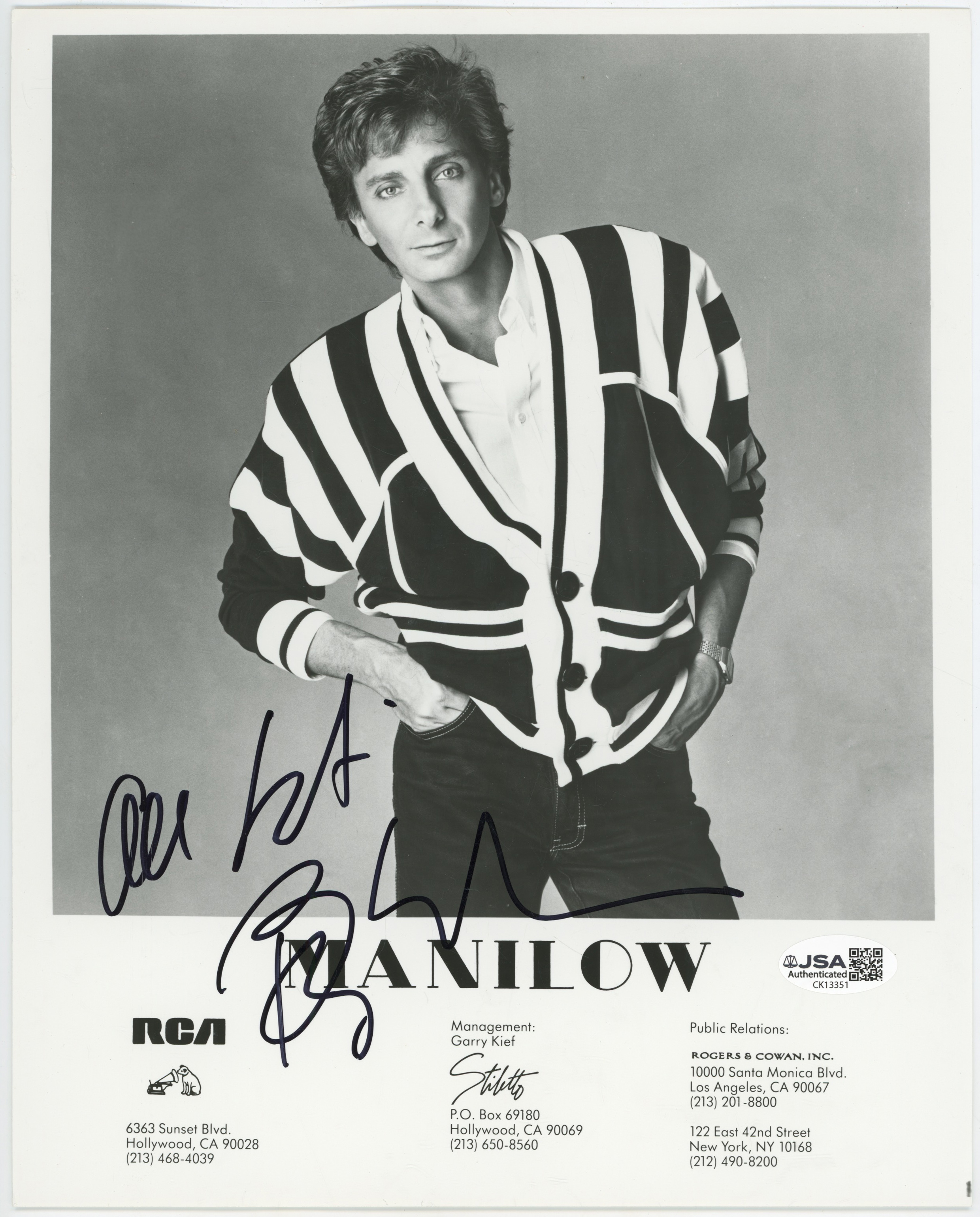 8 x 10 Manilow, Barry 9 JSA LOA (CARD)