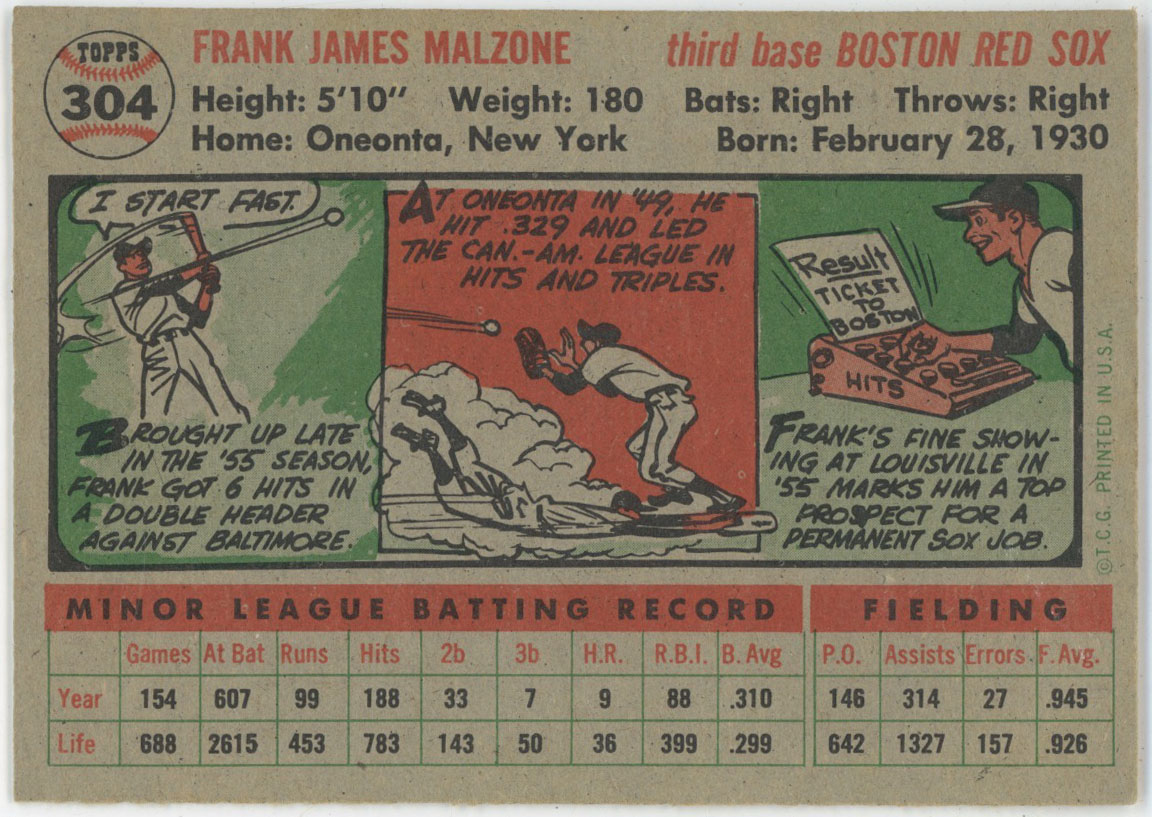 1956 Topps 304 Frank Malzone Auto Rookie Card 9.5