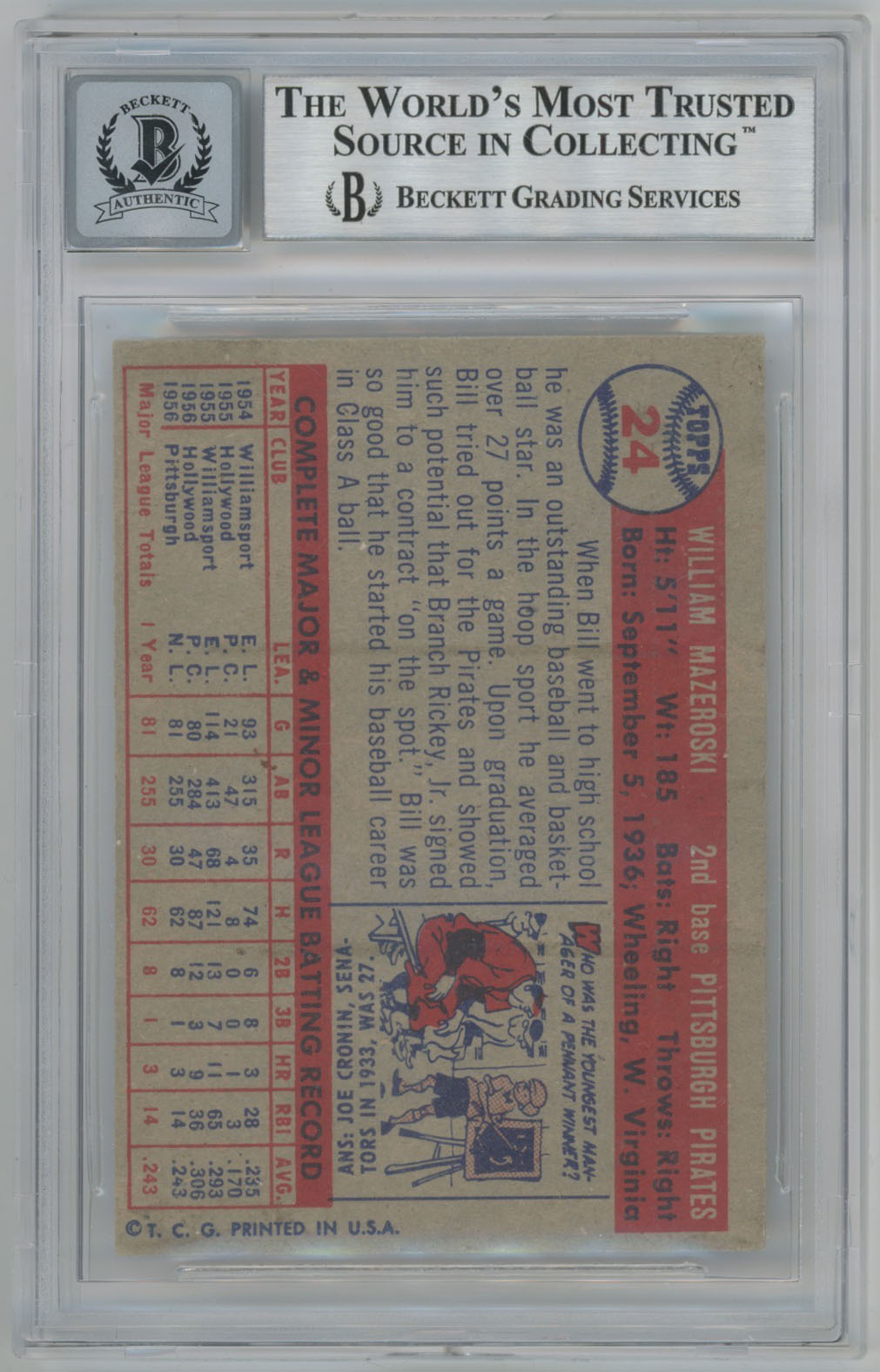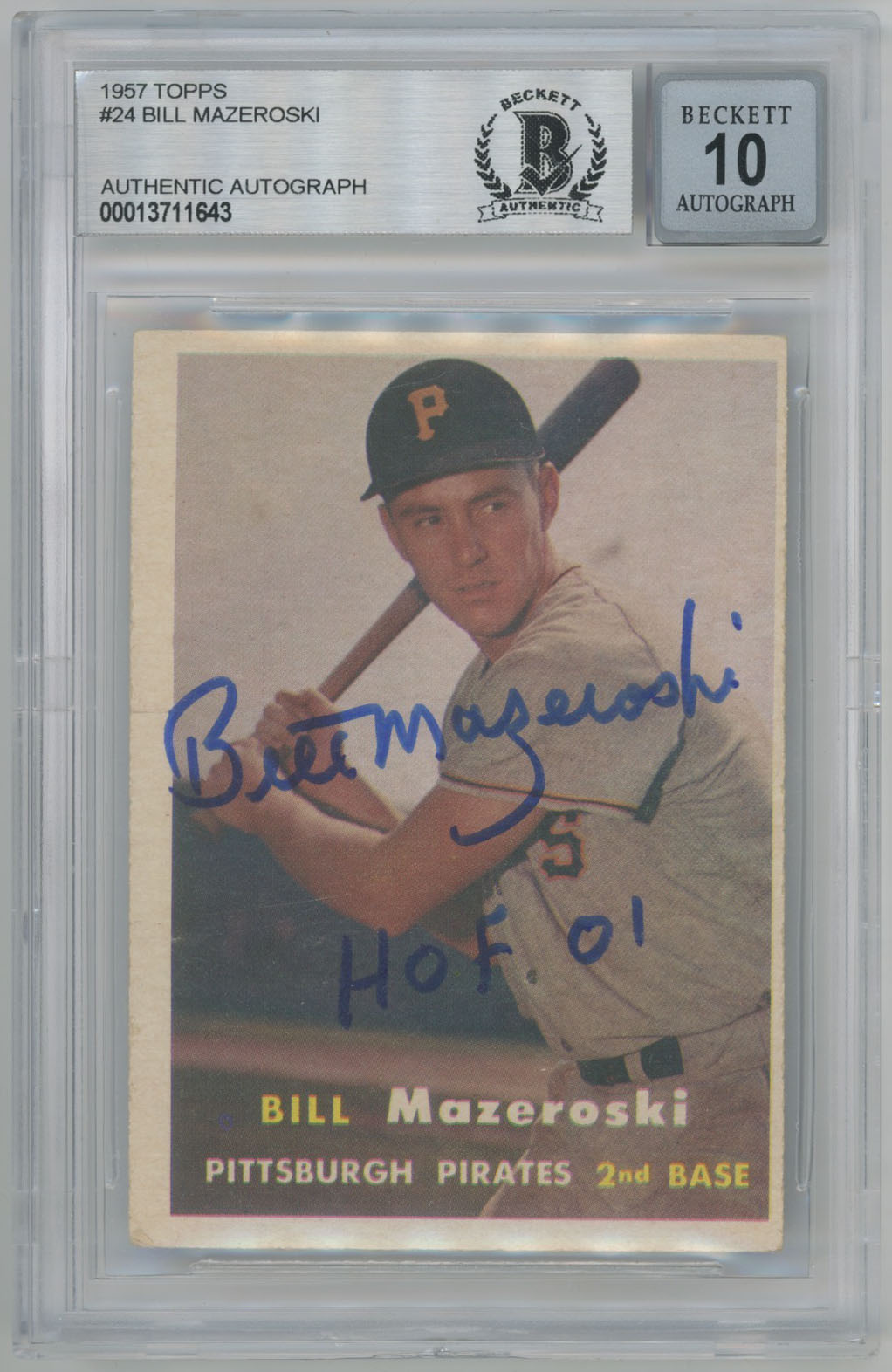 1957 Topps 24 Bill Mazeroski Signed Rookie Card/inscriptions Beckett 10 (auto)