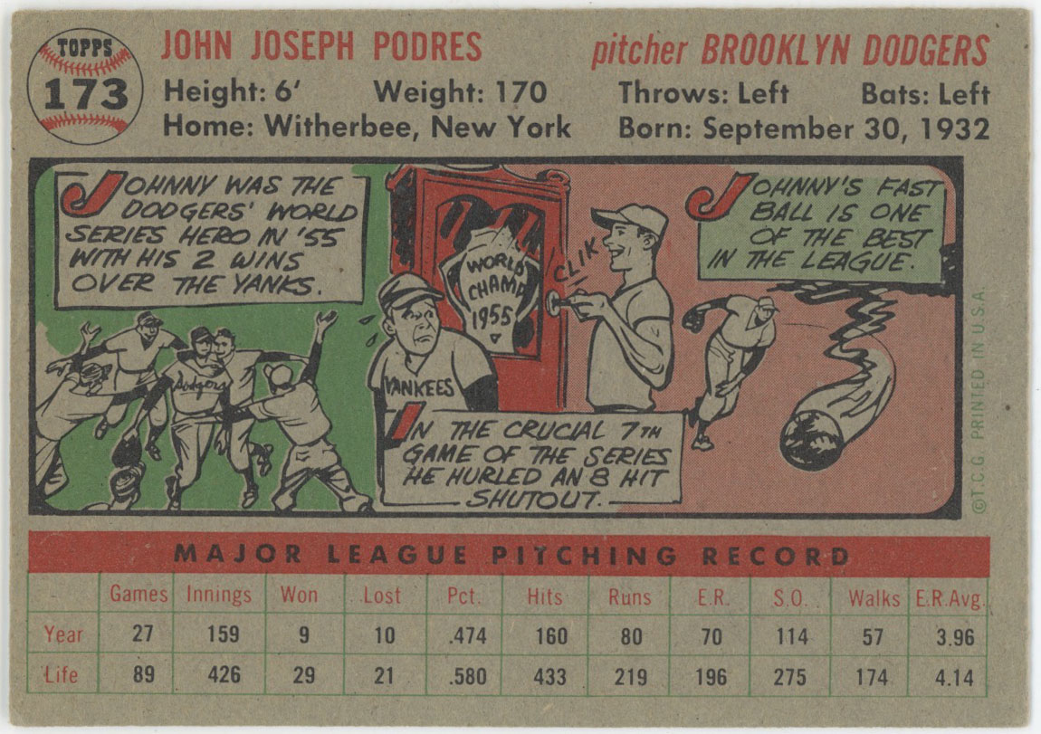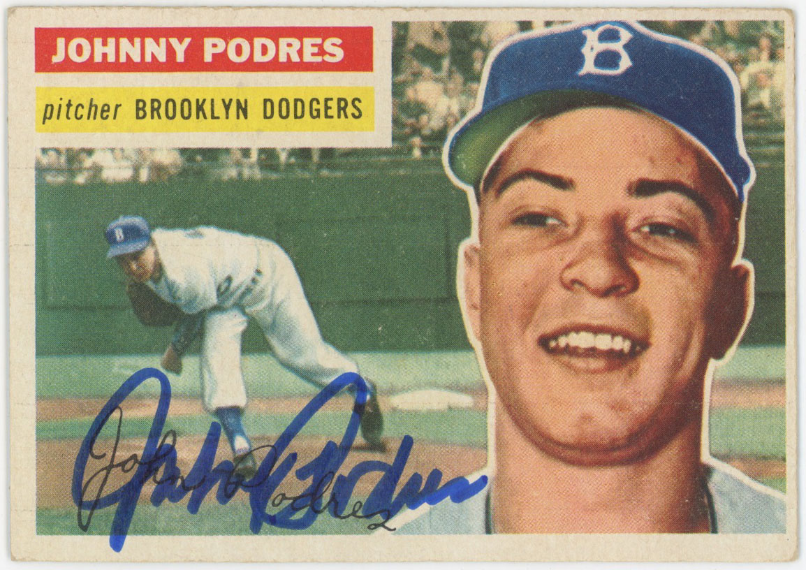 1956 Topps 173 Johnny Podres Auto Card 9.5