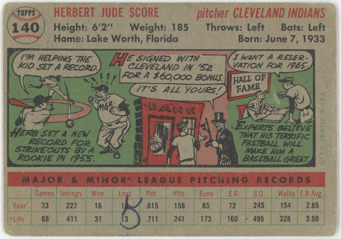 1956 Topps 140 Herb Score Signed Rookie Card 9.5