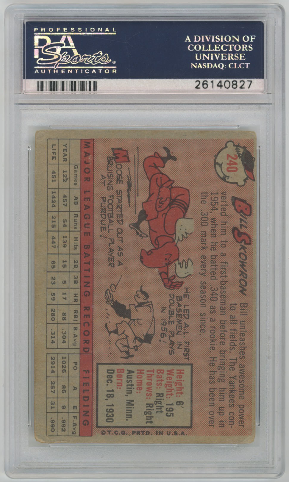 1958 Topps 240 Bill Skowron Auto Card - PSA Slabbed 9.5