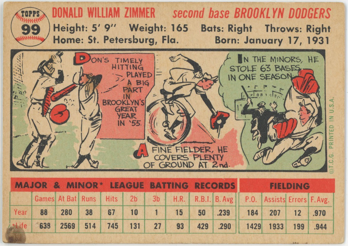 1956 Topps 99 Don Zimmer Auto Card 9.5