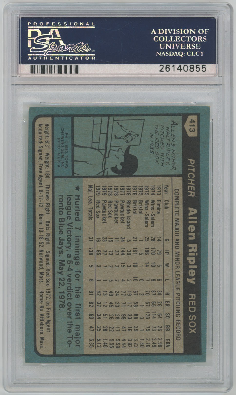 1980 Topps 413 Allen Ripley Signed PSA Boston Red Sox