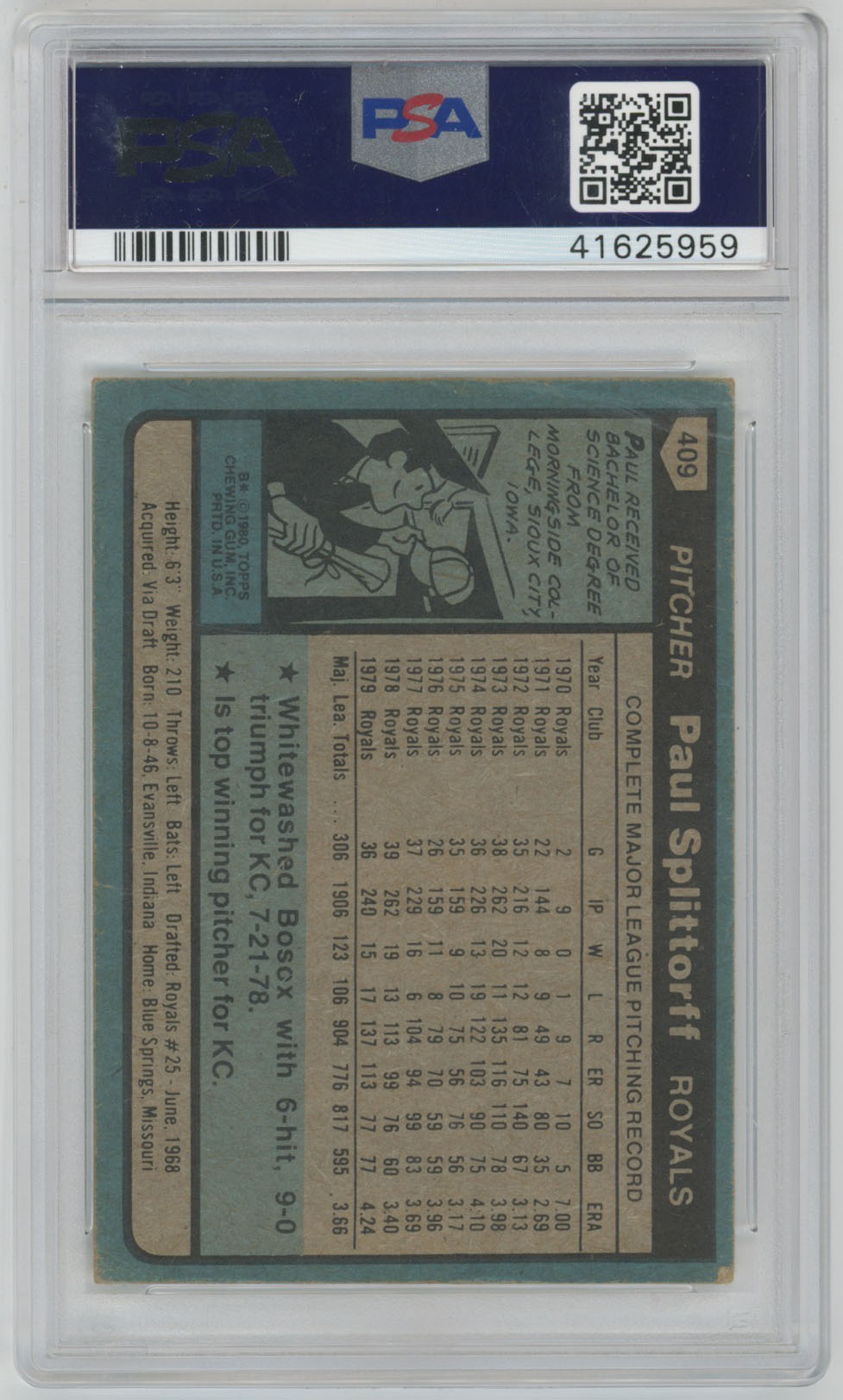 1980 Topps 409 Paul Splittorff Signed Card Royals PSA Slabbed