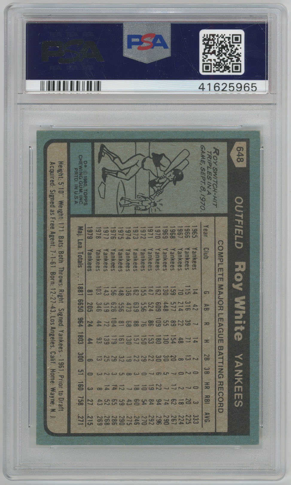 1980 Topps 648 Roy White Signed Card Yankees PSA Slabbed