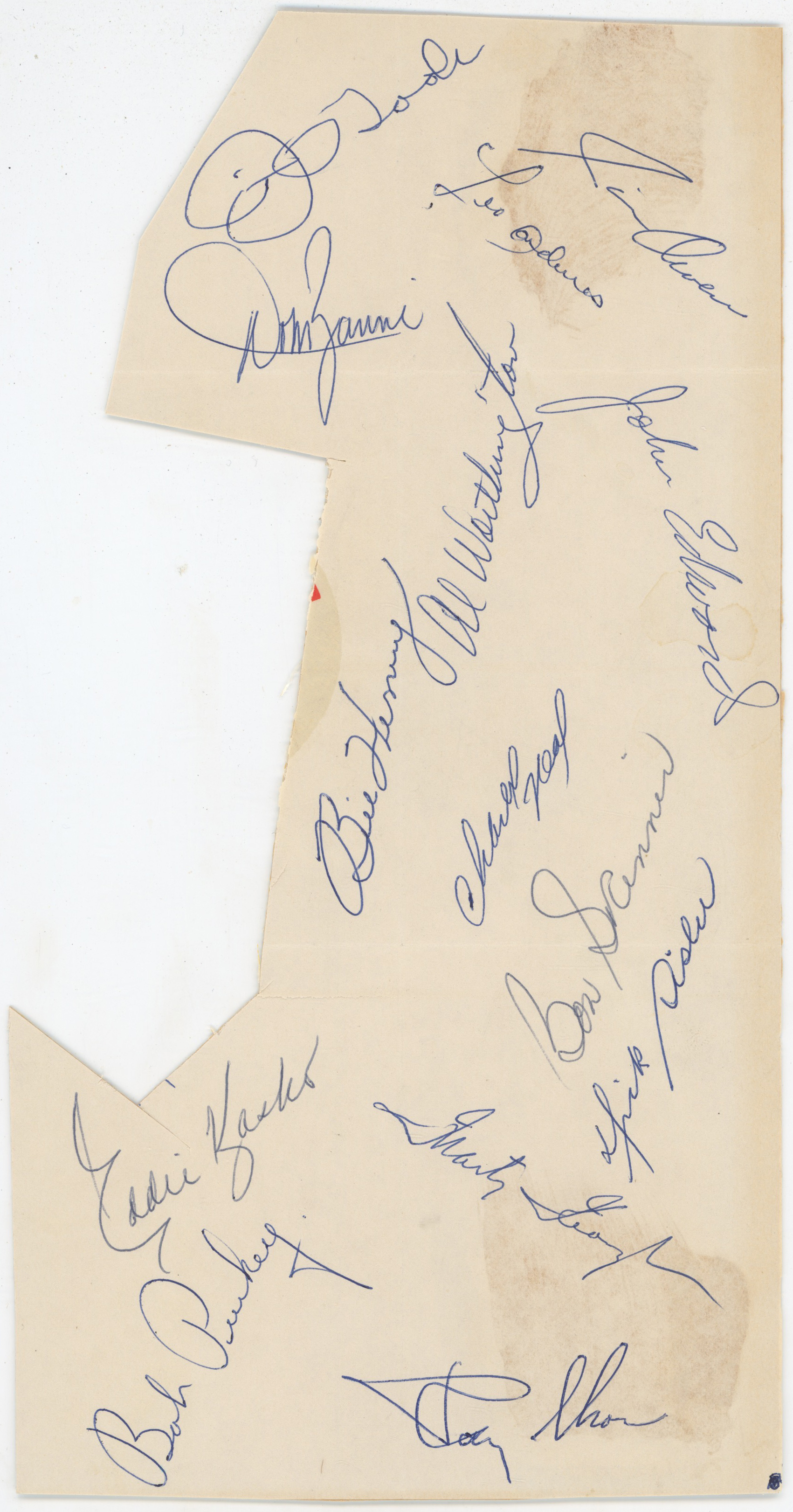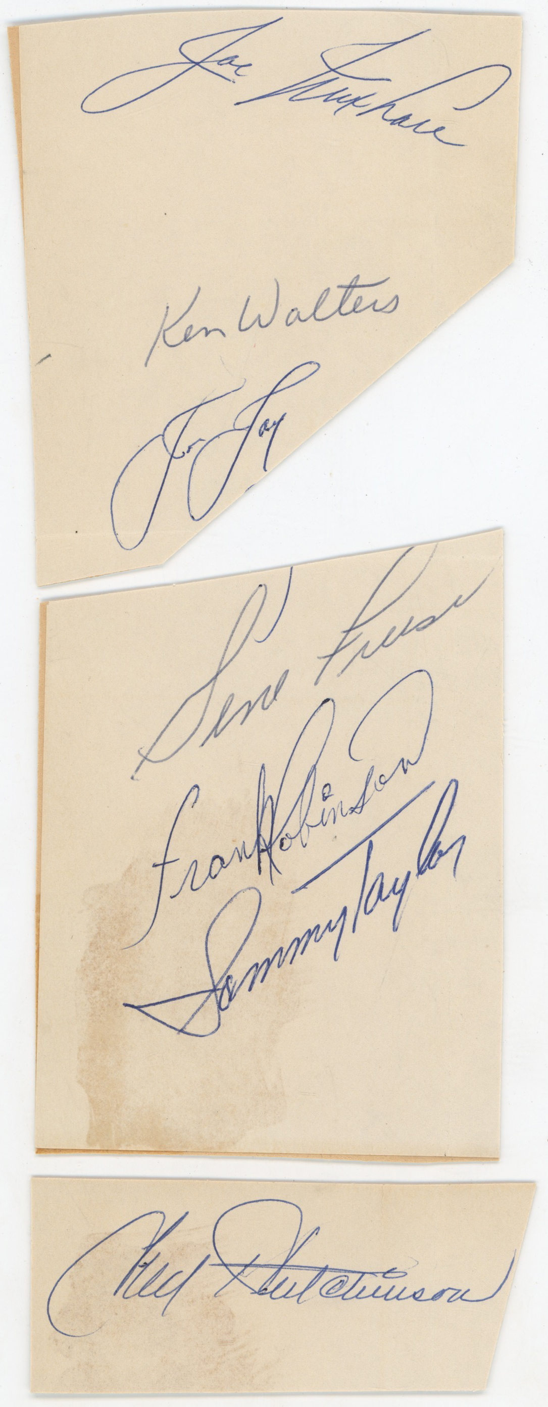 Cut 1963 Cincinnati Reds w/Hutchinson, F. Robinson (21 sigs) 9