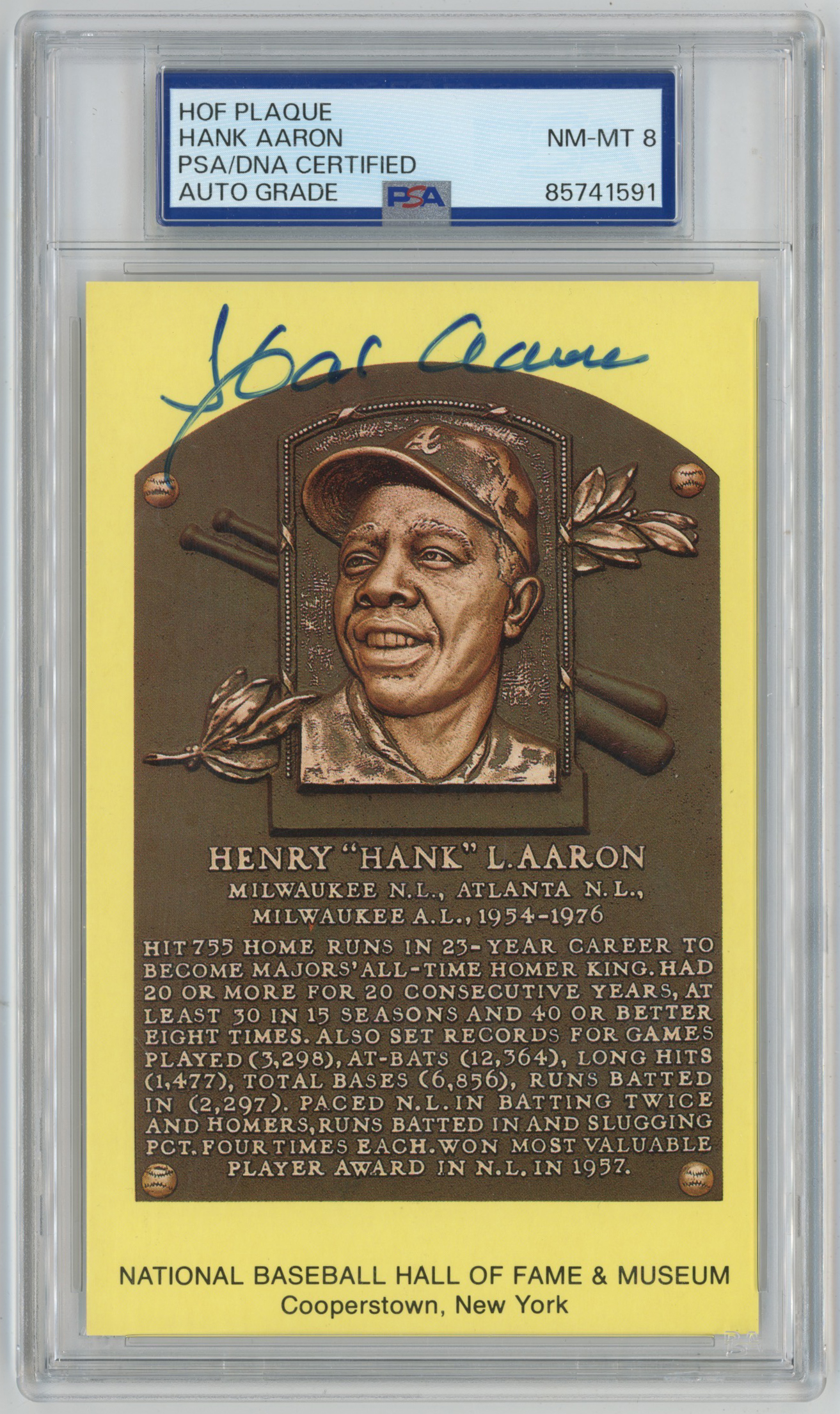 Yellow HOF Plaque 1 Hank Aaron PSA 8