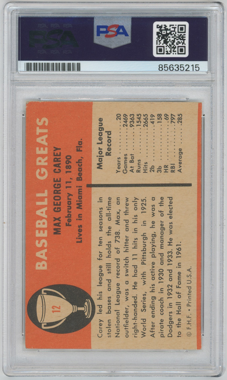1961 Fleer 12 Max Carey 8 (PSA slabbed)