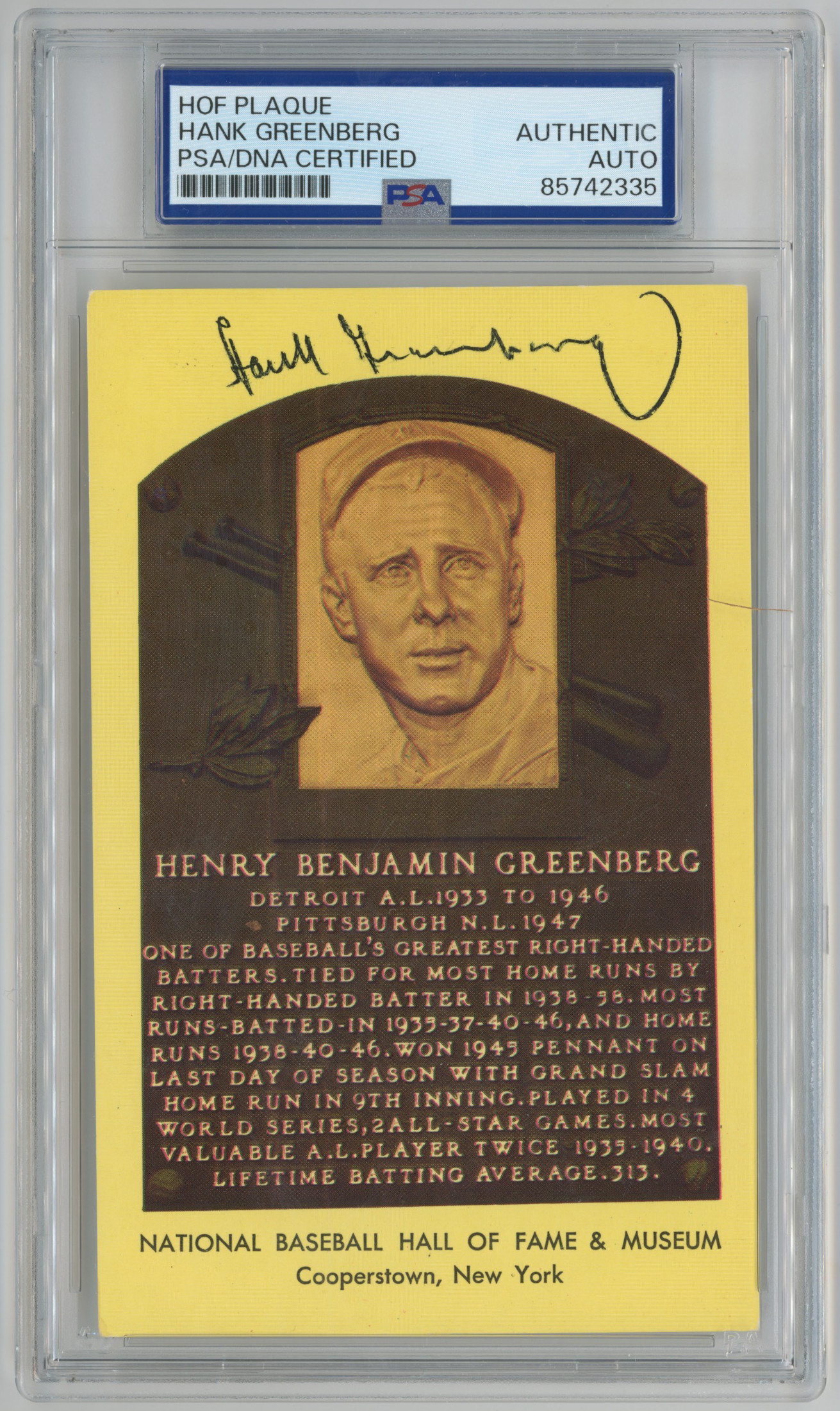 Yellow HOF Plaque 62 Hank Greenberg 8 (PSA Slabbed A)