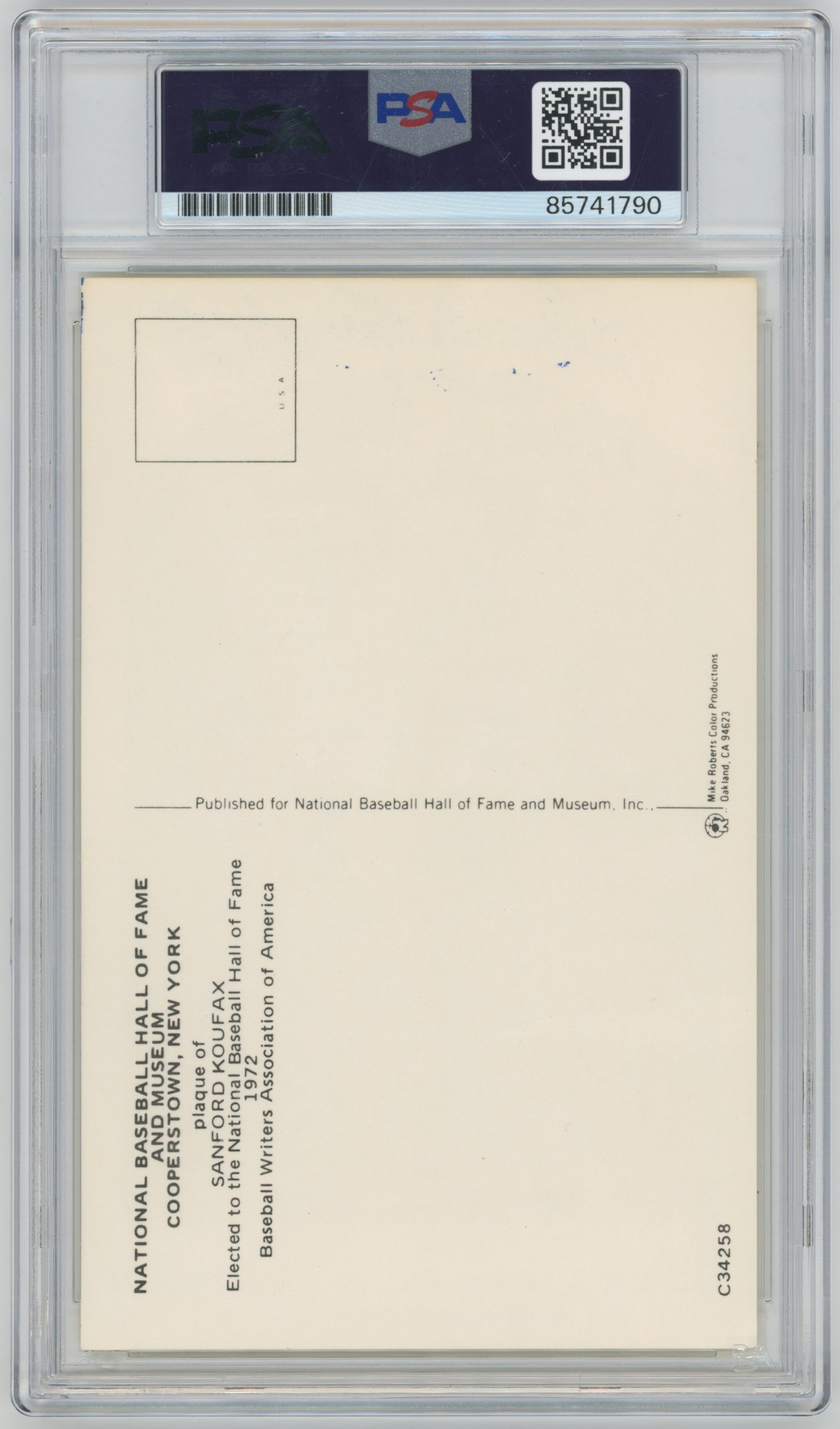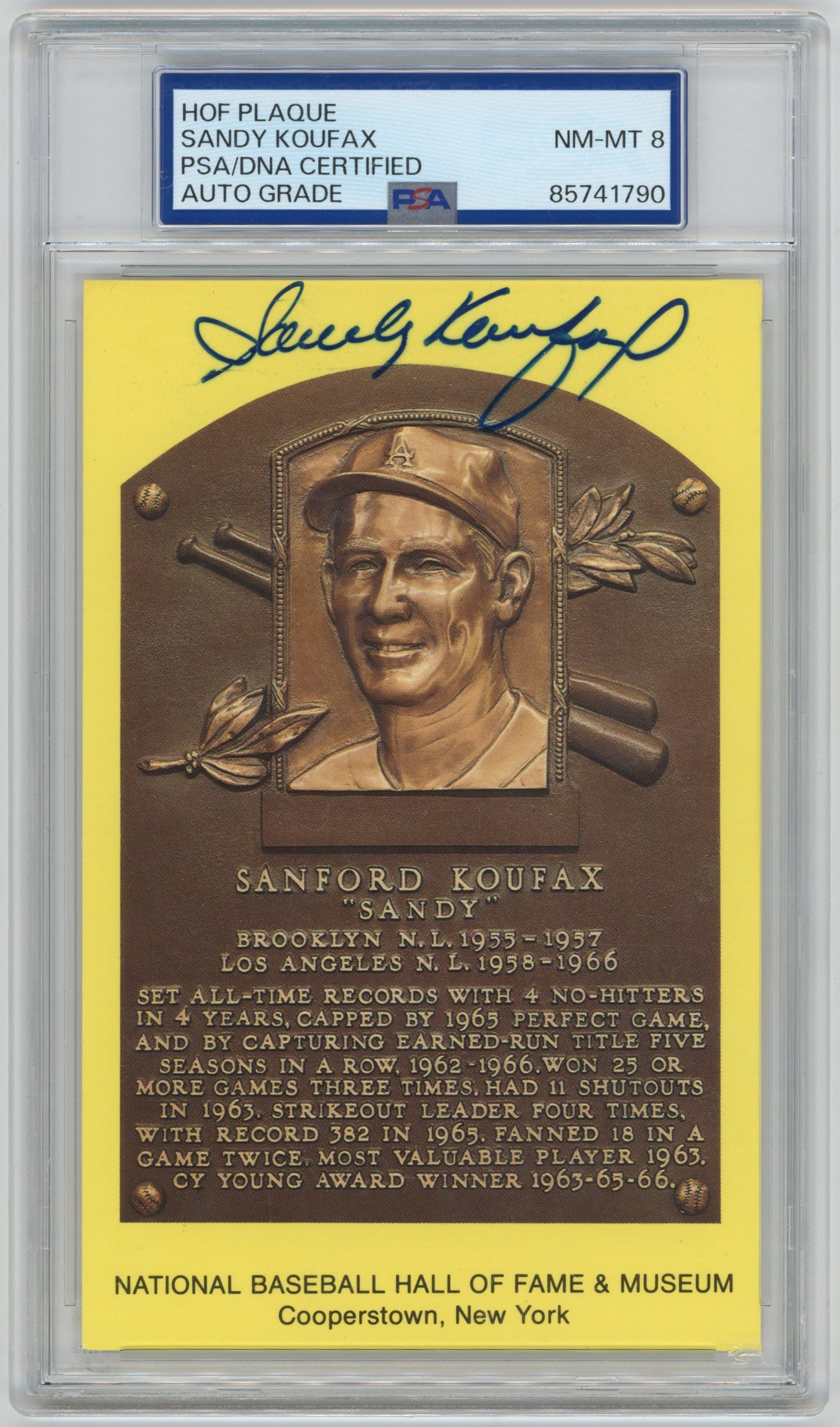 Yellow HOF Plaque 95 Sandy Koufax PSA 8