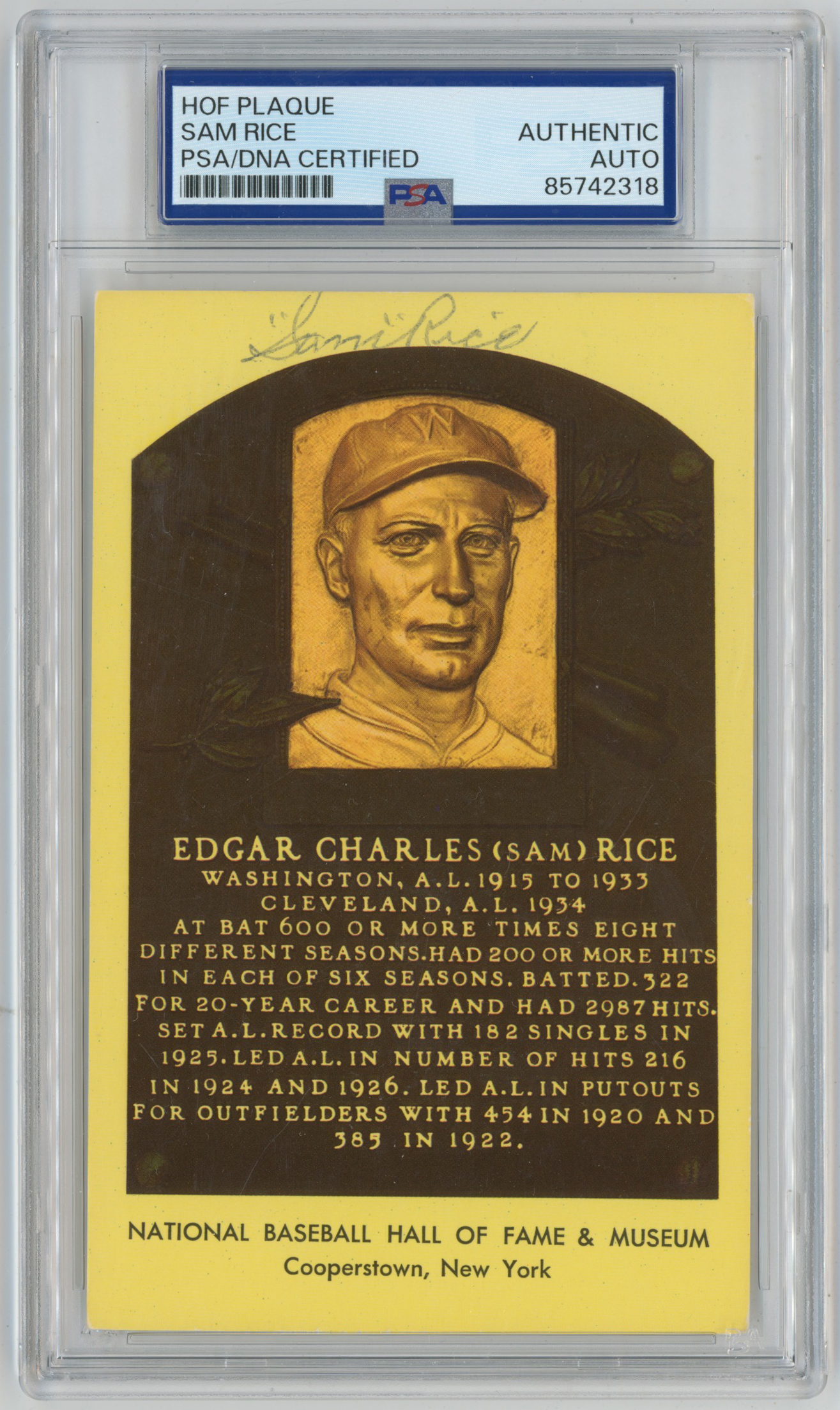 Yellow HOF Plaque 134 Sam Rice 8 (PSA Slabbed A)